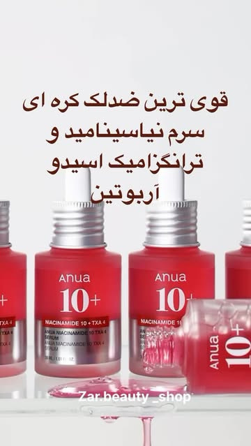 سرم ضدلک قوی و موثر از برند محبوب ترکیب قدرتمند از سه ماده ضدلک فوق العاده نیاسینامید، ترانگزامیک اسید و آربوتین ANUA NIACINAMIDE 10%+TXA 4% SERUM برند : حجم: # سازنده: کره جنوبی فاقد ترکیبات مضر مناسب همه انواع پوست همچنين حساس و مستعدجوش این سرم قدرتمند راه حلی مناسب برای داشتن پوستی درخشان و یکدست است. فرموله شده با 10% نیاسینامید، لکه های تیره، هایپرپیگمانتاسیون و رنگ ناهموار پوست را هدف قرار می دهد و پوست شما را بی عیب و نقص و درخشان می کند مزایا: ظاهر لکه های تیره و هایپرپیگمانتاسیون را کاهش می دهد یکنواخت کردن رنگ پوست برای داشتن پوستی روشن تر آبرسانی و تسکین پوست عملکرد سد پوستی را تقویت می کند یک سرم آبکی غنی شده با 10% نیاسینامید و 4% ترانگزامیک اسید برای هدف قرار دادن لکه های تیره سرسخت و هایپرپیگمانتاسیون با کمک به کاهش تغییر رنگ. حاوی 2% آربوتین برای کمک به اصلاح رنگ ناهموار پوست با محدود کردن تولید ملانین. بافتی سبک و بدون چسبندگی همچنین حاوی آلفا آربوتین برای روشن و یکنواخت شدن رنگ پوست و همچنین اسید هیالورونیک و روغن های گیاهی برای مرطوب کردن و تسکین پوست است این سرم ضمنا با دارا بودن سرامیدها و اسید هیالورونیک به حفظ سد رطوبت طبیعی پوست کمک می کند و در عین حال ظاهری صاف تر و درخشان تر به پوست می بخشد. با ترکیبات ملایم و در عین حال موثر، پوست با استفاده منظم درخشان تر و متعادل تر به نظر می رسد سه گانه قدرتمند از مواد فعال نیاسینامید، ترانگزامیک اسید و آربوتین نگرانی های خاص پوست را هدف قرار داده و پوستی بی عیب و نقص را ایجاد می کند در نسخه جدید سرم اصلاح کننده لکه های تیره فقط عنوان محصول و بسته بندی تغییر کرده است رنگ صورتی مبتنی بر مواد طبیعی از ویتامین ب نحوه استفاده: 1. صورت خود را کاملا تمیز کنید. 2. چند قطره از سرم را به صورت و گردن خود بمالید. 3. به آرامی ضربه بزنید تا کاملا جذب شود. 4. مرطوب کننده مورد علاقه خود را دنبال کنید برای بهترین نتیجه از آن به طور مداوم در روتین صبح و شب خود استفاده کنید. استفاده از ضد آفتاب را در طول روز فراموش نکنید